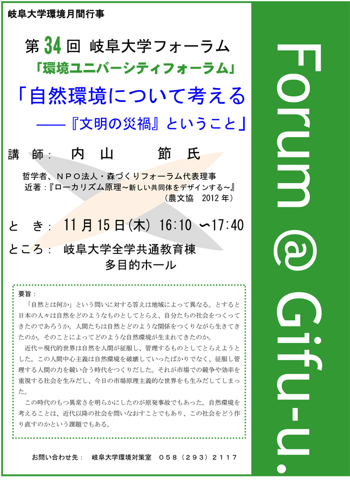 第34回 岐阜大学フォーラム「環境ユニバーシティフォーラム」