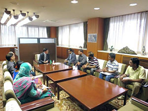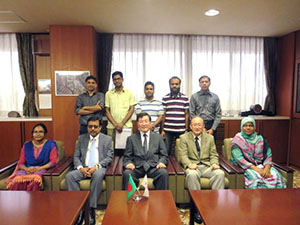 On Wednesday, September 3rd, 2014, Dr. Jiban Ranjan Majumder, Economic Minister of Embassy of Bangladesh in Tokyo, visited Gifu University and held meetings with President Hisataka Moriwaki and Dr. Fumiaki Suzuki, Executive Director for International Affairs and Public Relations as well as seven Bangladeshi participants including one researcher, one graduate and five students of Gifu University.