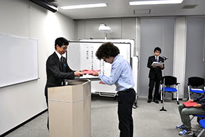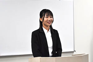 This was followed by speeches by Ms. Jayasekara Kavindra Gayangi (Sabaragamuwa University, Sri Lanka; with recommendations from the embassy), and Ms. Zhong Peirong (Guangxi University, China; with recommendations from the university) on behalf of the graduates of Japanese Language and Culture Studies. Mr. Diaz Jonathan (San Diego State University, USA), a graduate of the Japanese Society and Culture Program, also gave a speech. In their speeches, they expressed gratitude for the Japanese language instruction, and talked about how much they enjoyed the experience of cross-cultural communication.