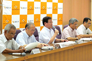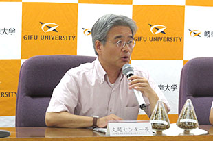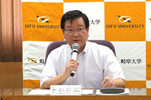 At the beginning of the conference, President Hisataka Moriwaki introduced of the next presentation about "Project Kickoff for Pet Dog Cancer Prevention" in association with the "Gifu University's Future Visions for the Year 2025." Then, Dr. Koji Maruo, Director of Comparative Cancer Center, Faculty of Applied Biological Sciences explained about the Project.