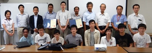 Over a five week period that started on July 7, the project's short-term training session in Japan was held at Gifu University. Two Engineering Faculty members from the National University of Timor-Leste, Dr. Cancio Monteiro and Mr. Joao Cabral, received training and guidance under the supervision of Associate Professor Hiroki Yoshida and Associate Professor Yasuhiro Takahashi of the Electrical and Electronic Engineering Division, Faculty of Engineering. Before the trainees returned to their country, a meeting was held on August 5 at the Faculty of Engineering building to present the results of the training.