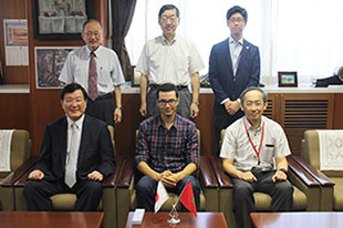 On September 14, Mr. Seif-eddine Cherif, doctoral student of Mohammed the First University (Kingdom of Morocco) paid a courtesy call on President Hisataka Moriwaki with Mr. Yasuhiro Ito, Chief Officer of International Affairs Division, Gifu Prefectural Government, who were accompanied by Dr. Keitetsu Rokugo, Dean of the Faculty of Engineering of Gifu University and Dr. Nobuoto Nojima, Professor of the same Faculty. Gifu University was represented by Dr. Fumiaki Suzuki, Executive Director for International Affairs and Public Relations and Ms. Junko Sugaya, Director of the International Planning Division.