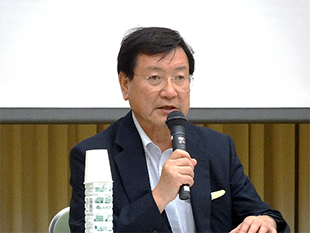 In the second session, Mr. Yasukazu Kawai, Manager, General Administration Division of Nagoya University gave an opening speech, which was followed by the two speeches by Mr. Makoto Hirata of Aichi Prefectural Government, and President Moriwaki. After these speeches, a talk session started with the participation of international students of Gifu University, Nagoya Institute of Technology and Meijo University. From Gifu University, Miss Zeng Lei, a second-grade student of the Policy Studies, the Graduate School of Regional Studies attended the session. She spoke about reasons why she decided to study in Japan and her wishes to find a job in Japan. She also expressed her impressions about her own personal experiences of job-seeking all in fluent Japanese.