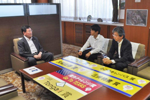 Mr. Shunya Chosokabe (4th year student, Department of Chemistry and Biomolecular Science, Faculty of Engineering) and his supervisor visited the Office of President on June 24, 2019 to report his winning at Tongali Business Contest 2019 to President Hisataka Moriwaki.