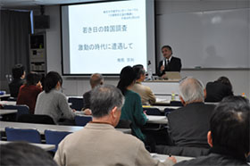 講演会では,太田孝子教授から「若き日の内地留学,新女性たちの知の獲得」,次に,朴賛基教授から「若き日の日本留学,体験的事実からの思考」,最後に椎橋宗利主幹から「若き日の韓国調査,激動の時代に遭遇して」と題する講演が行われました。