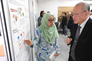 最終日の21日(金)には「成果報告会」として,ウィンタースクールで学んだことやラボワークでの研究成果をポスター形式にて発表しました。報告会冒頭に,自己紹介やウィンタースクールの振り返りを日本語で行いましたが,どの参加学生もサバイバル日本語講座で学んだ成果を大いに発揮していました。報告会では自身の研究テーマについて,研究の動機や実験結果,考察等を体系的に発表しましたが,中には自身が作成した機械等,実物を用いて発表する姿もあり,聴衆の関心を集めていました。成果報告会の終盤には,本学森脇学長から「皆さんが非常に短い期間の中で,日本語や各研究活動に精力的に取り組まれたことがよく分かり,大変嬉しく思います。」という講評がありました。
