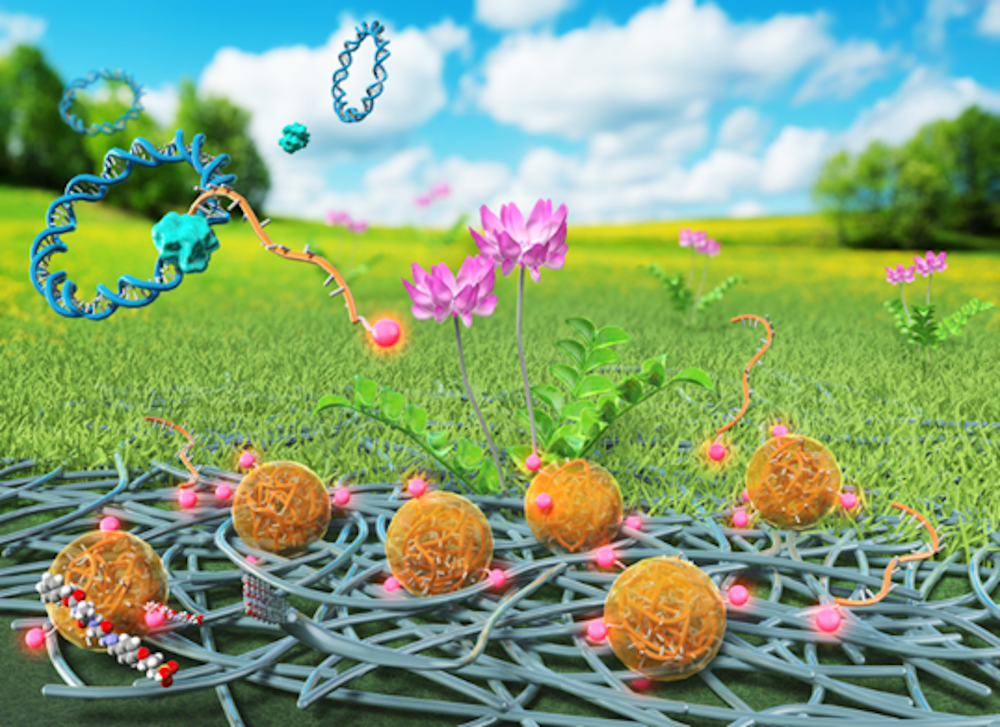 ナノスケールの箱庭で、ペプチド分子を集めた草原をつくり、